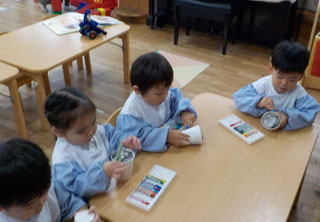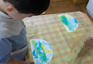 2歳児。はじき絵を楽しみ、クラゲを作りました。…