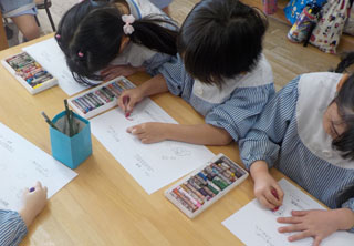鉛筆の持ち方、姿勢を確認してから〇の形を書きました。2016.01.16…