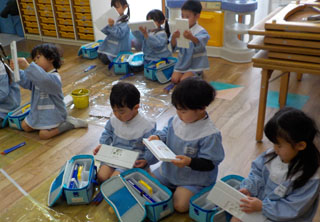 初めての絵画?自分の道具を確認したり、筆を水でといたり、片づけを教わりました。2026.01.15…