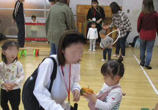 今日は『みんなで遊ぼう』の日でした。教室外のお友だちも多数参加して楽しいひと時となりました。ホールでボールやフープ、一本橋で遊んだりハロウィンのかぼちゃを見たり、ハロウィン制作を楽しみました。