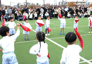 寒さを心配されましたが園児たちは負けることなくオープニングセレモニー、リズム、かけっこ、組体操、リレーを楽しんでいました。全11枚