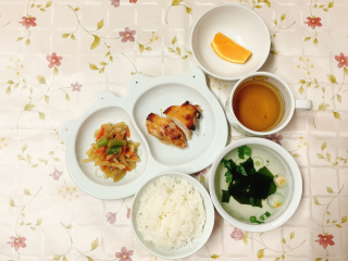 七分つき玄米ご飯 かしわの西京焼き いろいろ野菜の金平 オレンジ 麩とわかめのすまし汁