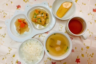 七分つき玄米ごはん 和風オムレツ 大根と竹輪の煮物 バナナ なすと麩の味噌汁