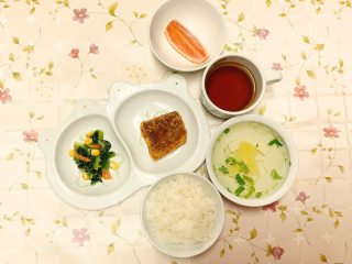 七分つき玄米ごはん かれいの唐揚げ 小松菜の胡麻マヨ和え グレープフルーツ じゃがいもと豆腐のすまし汁