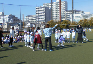 年長組の体操参観。グランドでマラソン大会、保護者の皆さんと一緒の大縄跳び。楽しいひと時となりました。2026.01.15
