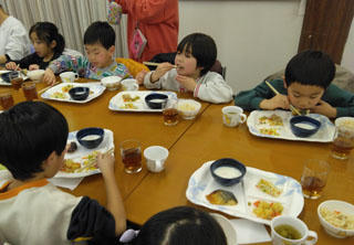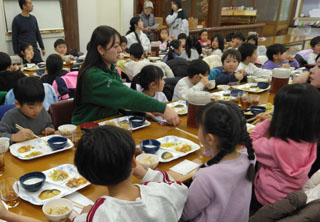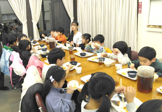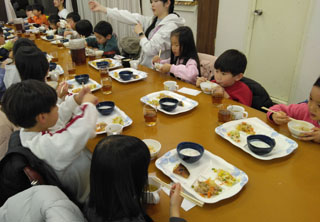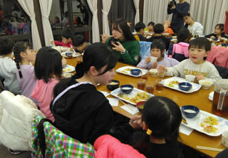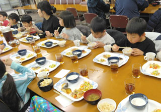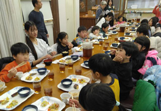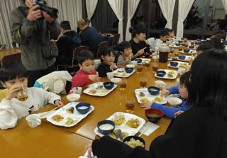 みんなと食べる最後の夕食。昼間の疲れも見せず元気に食べています。2026.02.16