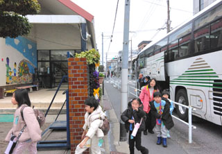 帰りのバス中、寝ている子もいますね。おやつを食べたりしながら園に戻りました。