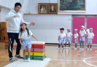 体操で跳び箱チャンピオンを決めていきました。3,4,5,6段に挑戦し、最後は7段にも挑戦する子が多くありました。怖がらずに頑張って挑戦していました。
