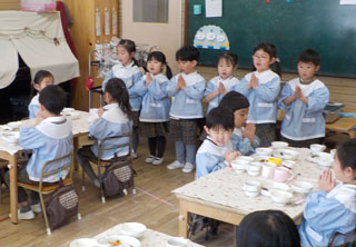 制作では雛飾りの仕上げをしました。給食ではお当番さんが前に出ていただきますをしていました。2026.02.24