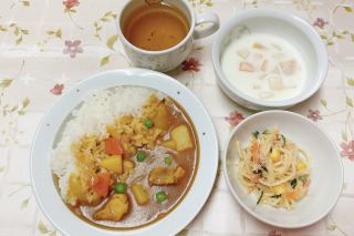チキンカレー スパゲティサラダ フルーツヨーグルト