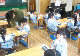 4歳児のメロディオンの様子。『ファ』の音を習いました。その後にレミファと続けて弾きました。…