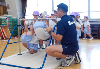最年少組の体操の様子です。マットと鉄棒をしました。…